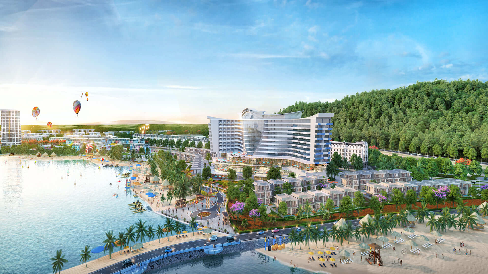 - Quần thể biệt thự đảo cao cấp: Đây là quần thể tạo điểm nhấn của toàn bộ dự án khi sở hữu riêng cho mình một biển hồ lagoon rộng 27ha. Đặc biệt, nhờ được lọc qua 2 lớp hệ thống lọc nước hiện đại, biển hồ lagoon có làn nước trong xanh nhất trong các bãi biển tại đây. Là quần thể cao cấp nhất, 100% các căn biệt thự tại đây đều sở hữu bãi biển riêng.