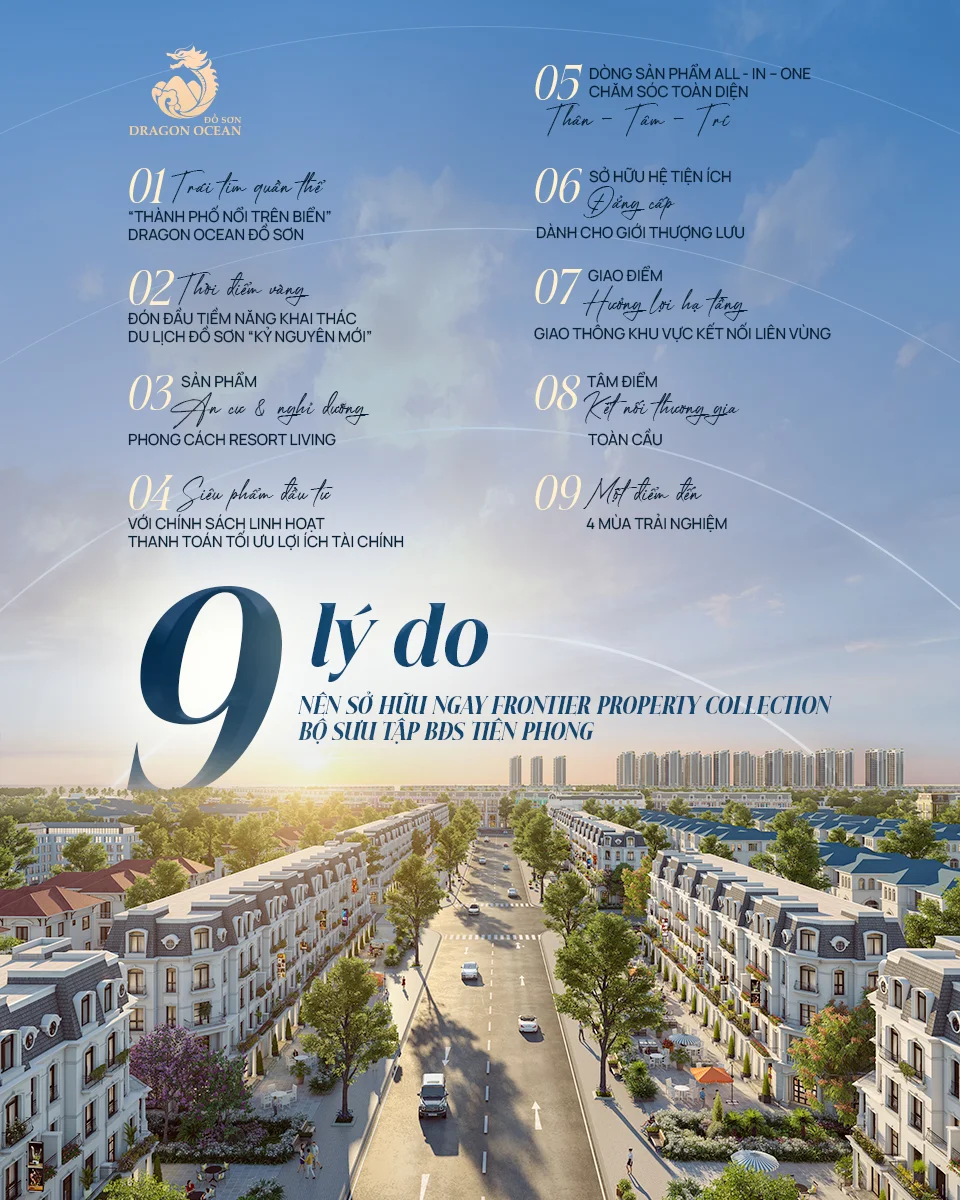 Với mục tiêu đưa Dragon Ocean trở thành khu du lịch quốc tế mang tầm vóc quốc tế, trở thành biểu tượng du lịch của Đồ Sơn cũng như Hải Phòng, Geleximco đã mang tới dự án 5 tầng tiện ích đa thế hệ và 5 quần thể đa mục: