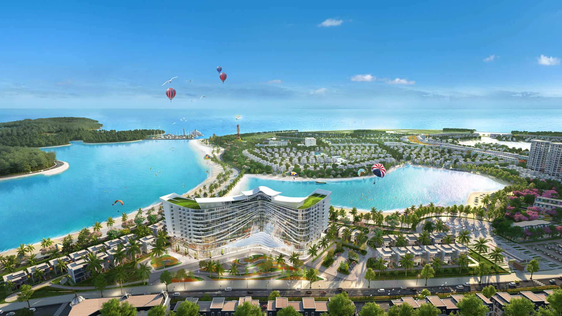 - 54 căn nhà phố view biển: nằm trên trục đại lộ 48m, ôm trọn view biển Dragon Beach, kề bên khách sạn tiêu chuẩn quốc tế.