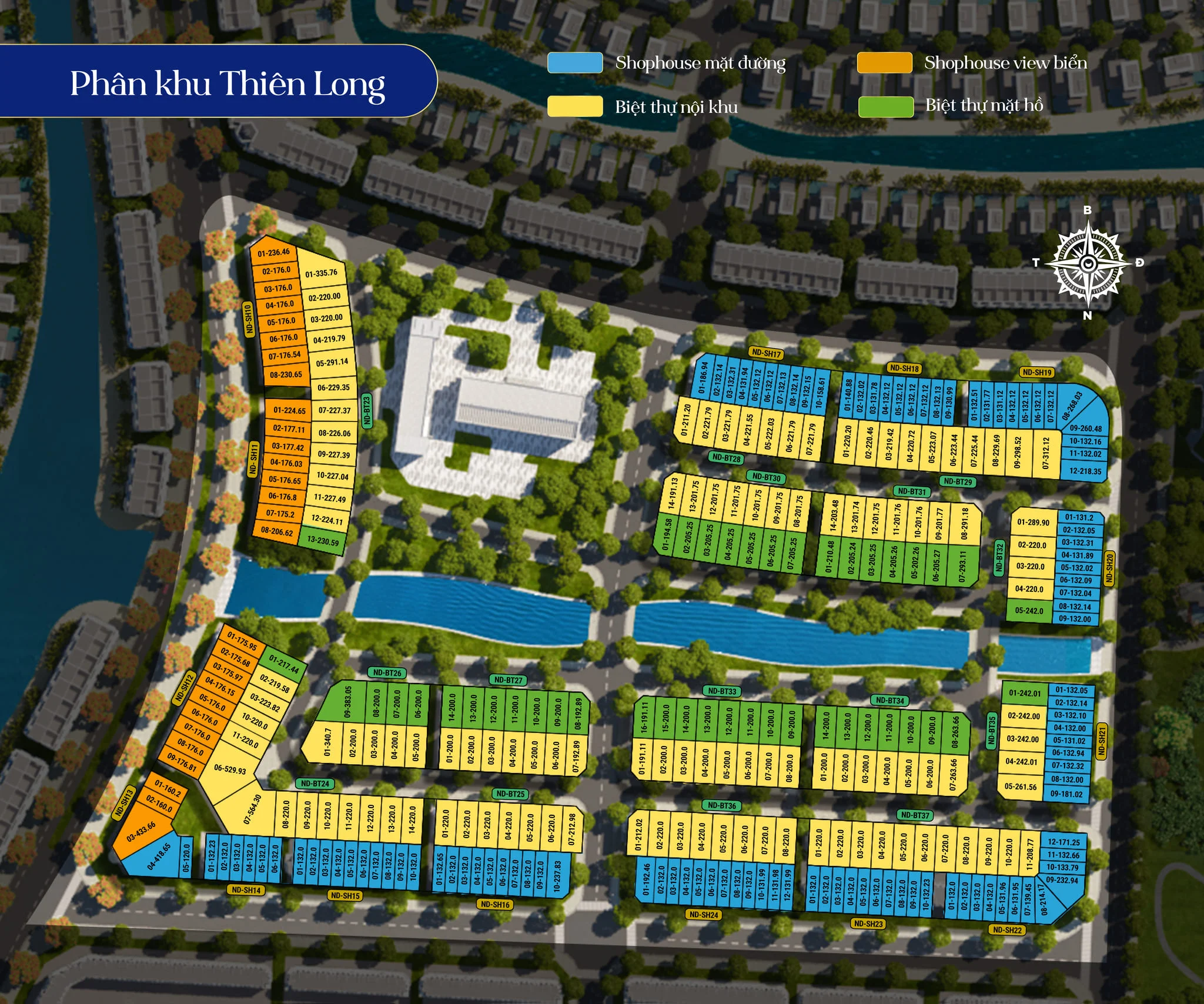 Phân khu Thiên Long được quy hoạch tại vị trí đẹp Zone 6 trên mặt bằng dự án. Một mặt phân khu tiếp Phân khu tiếp giáp khu đắt giá nhất tại dự án – Châu Long, hướng ra biển và sân Golf. Địa thế này phân khu như một cánh hoa nhỏ của toàn Khu du lịch, mang đến những dòng sản phẩm đẳng cấp cho cư dân. Phân khu này gồm có 2 dòng sản phẩm là Shophouse và Biệt thự, gần kề nhiều tiện ích hấp dẫn.